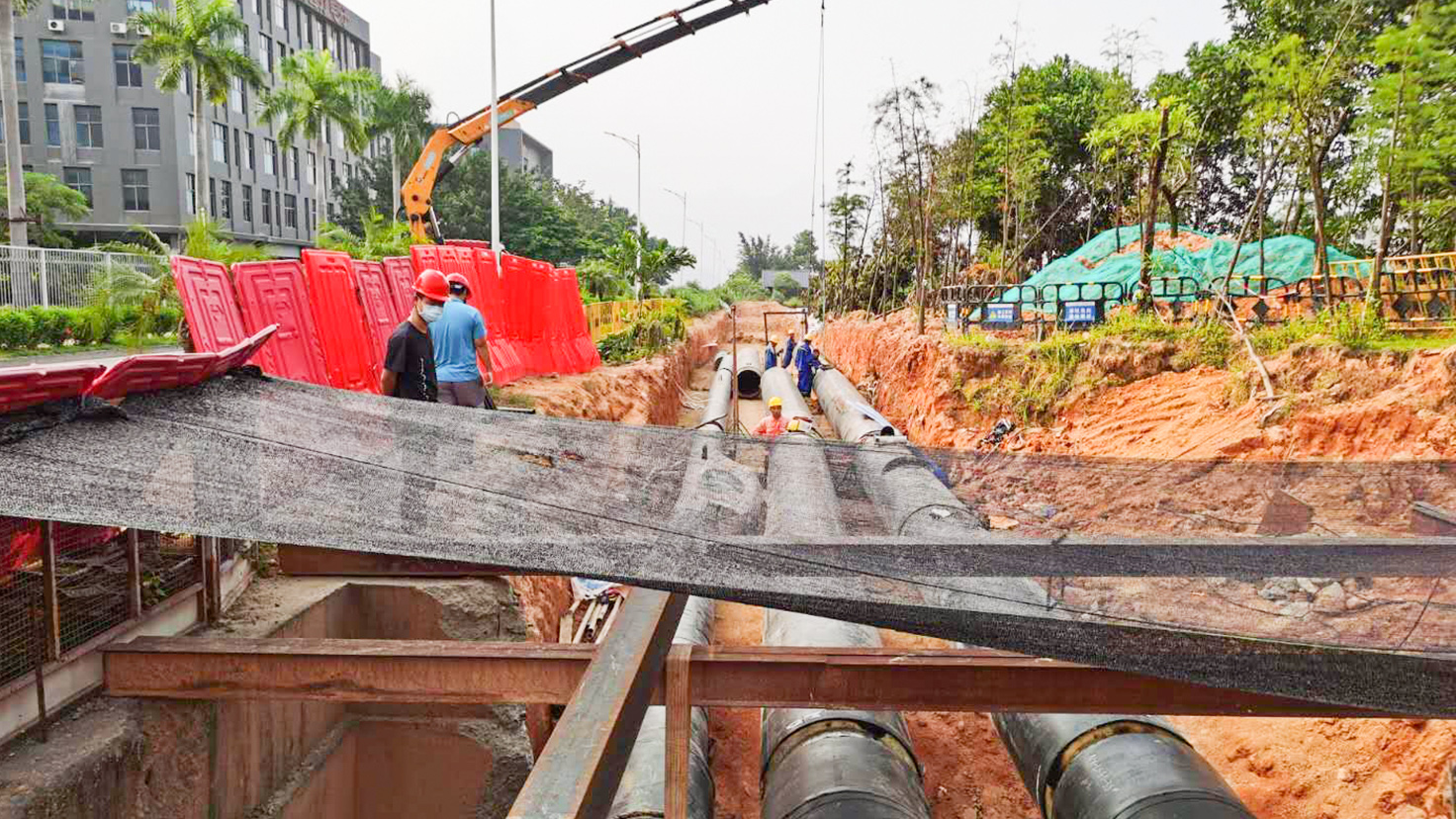 項(xiàng)目規(guī)模:從華電能源站建設(shè)至臨松路、臨惠路、榮田路、翠景路、蘭和路等熱用戶,蒸汽管道管徑DN450、DN300、DN200,冷水管道管徑為DN700、DN500,主管道總長(zhǎng)度18.3km